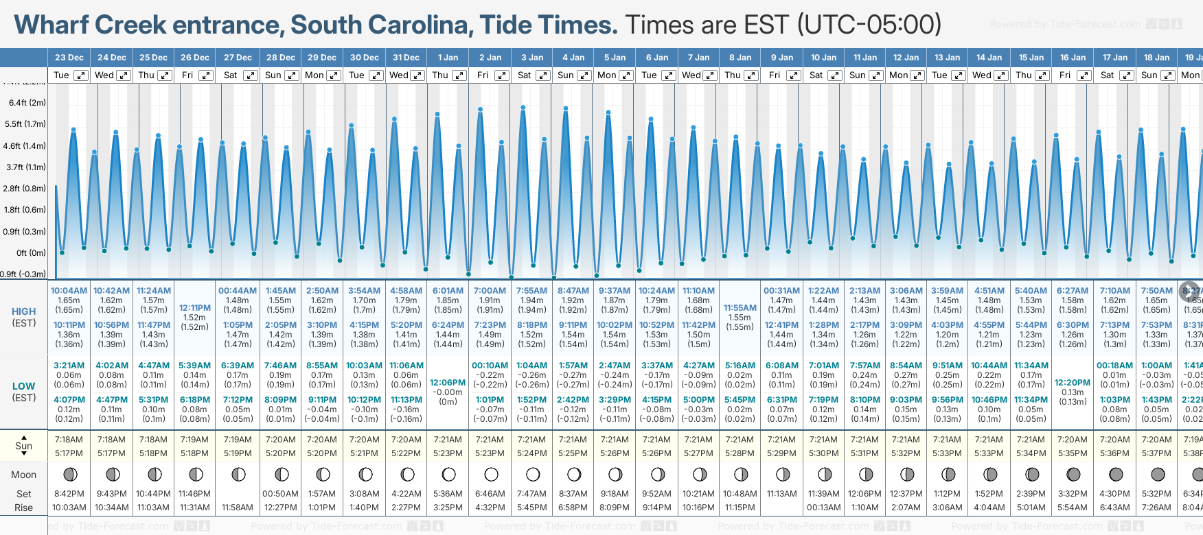 NOTE: Use of this site for Wharf Creek entrance, South Carolina tide times is subject to our terms.