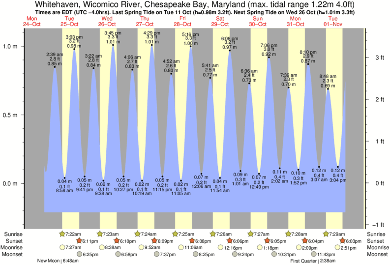 Tide chart for Whitehaven, Wicomico River, Chesapeake BayShowing low and high tide times for the next 30 days at Whitehaven, Wicomico River, Chesapeake Bay. Tide Times are EST (UTC -5.0hrs).
