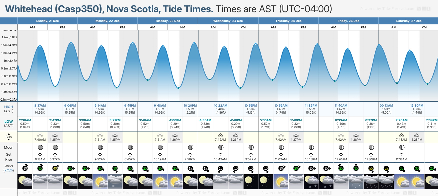 NOTE: Use of this site for Whitehead (Casp350), Nova Scotia tide times is subject to our terms.