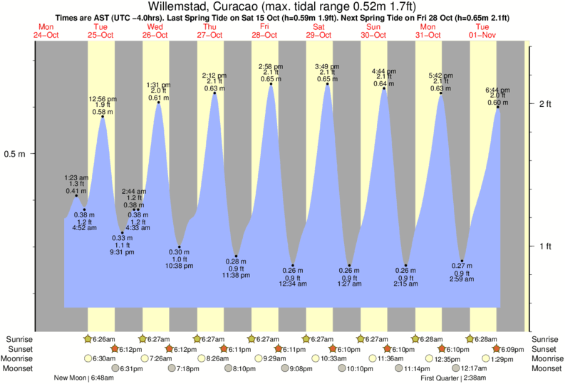 Tide Times are AST (UTC -4.0hrs). Last Spring High Tide at Willemstad, Curacao was on Thu 18 Dec (height: 0.61m 2.0ft). Next high Spring Tide at Willemstad, Curacao will be on Fri 02 Jan (height: 0.68m 2.2ft).