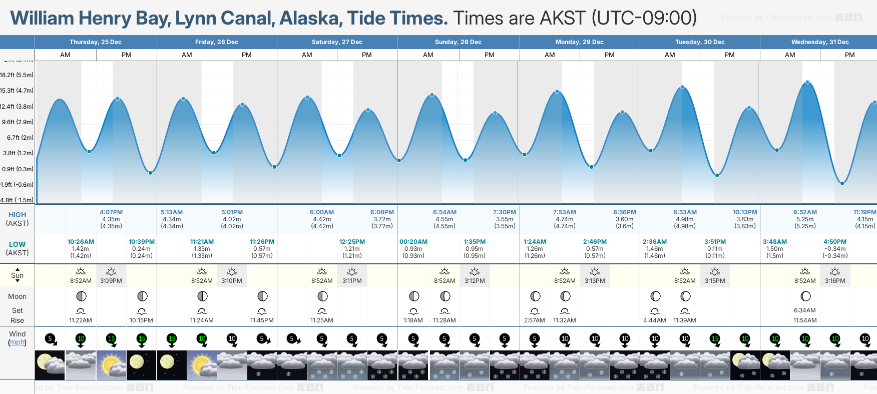 Tide Times for William Henry Bay, Lynn Canal: Wednesday 31 December 2025