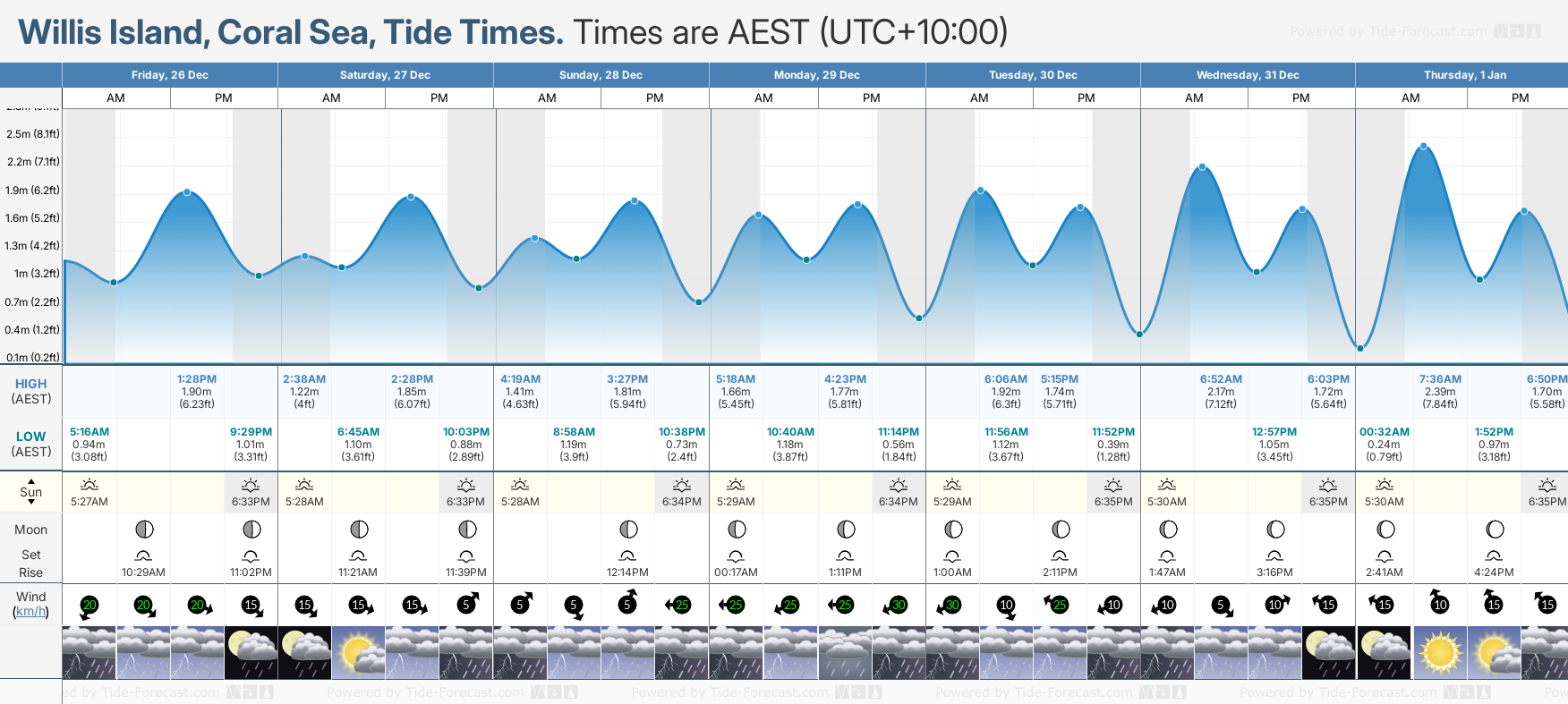 Tide Times for Willis Island (tomorrow): Friday 26 December 2025