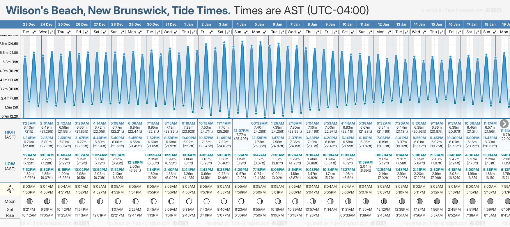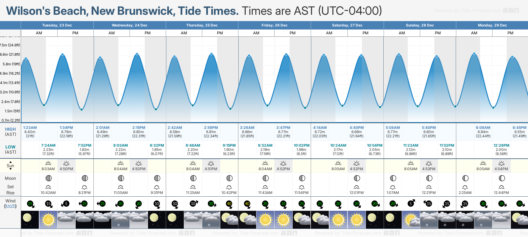 NOTE: Use of this site for Wilson's Beach, New Brunswick tide times is subject to our terms.