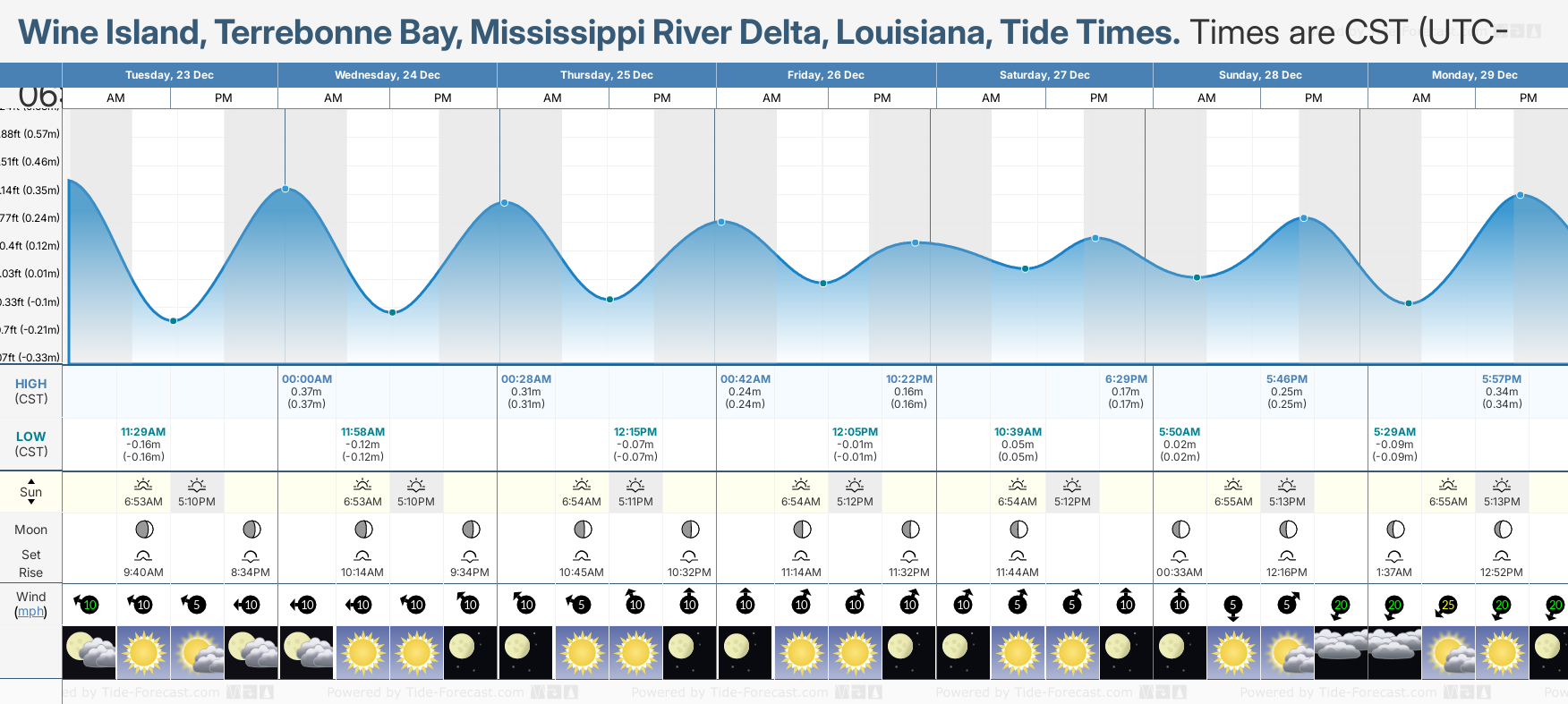 Tide Times for Wine Island, Terrebonne Bay River Delta (tomorrow): Tuesday 23 December 2025