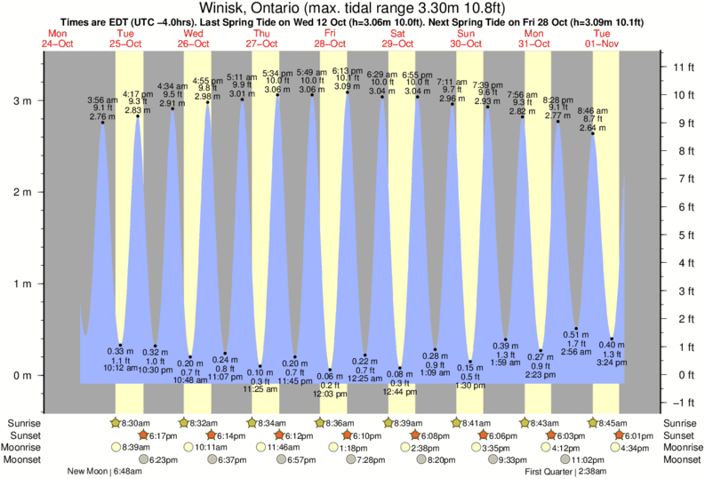 December and January Tide charts for Winisk: The tide charts below show the height, time and date of high and low tides for the next 30 days.