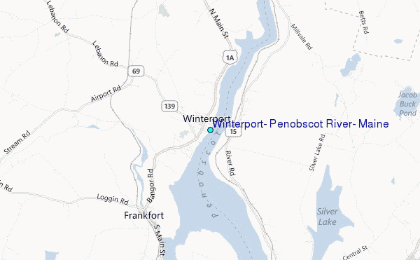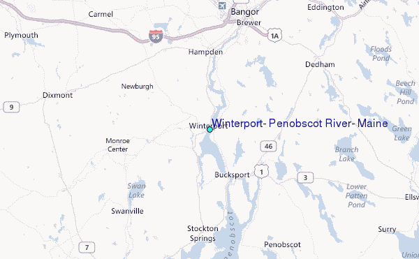 Use this relief map to navigate to tide stations, surf breaks and cities that are in the area of Winterport, Penobscot River, Maine.