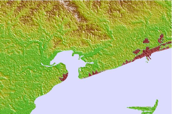 Use this relief map to navigate to tide stations, surf breaks and cities that are in the area of Wolf River, Henderson Avenue bridge, Mississippi.