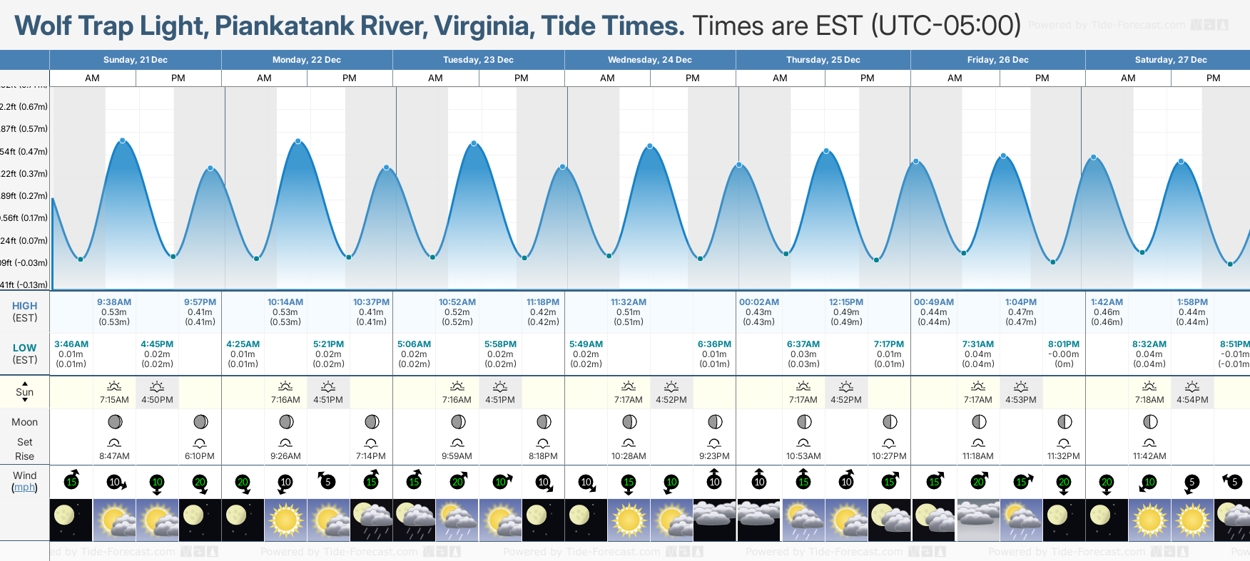 Tide Times for Wolf Trap Light, Piankatank River (tomorrow): Sunday 21 December 2025