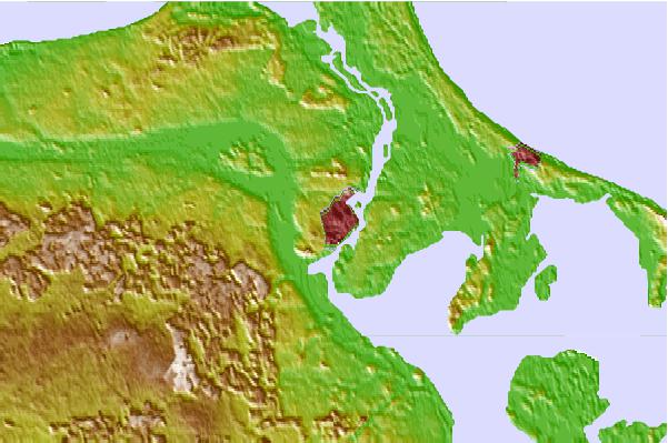 Use this relief map to navigate to tide stations, surf breaks and cities that are in the area of Wolgast.