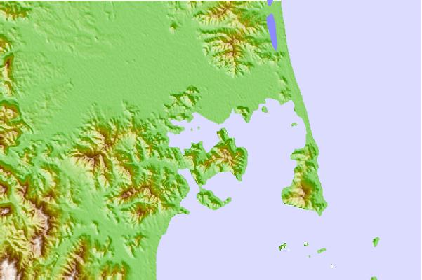 Use this relief map to navigate to tide stations, surf breaks and cities that are in the area of Wonsan, North Korea.