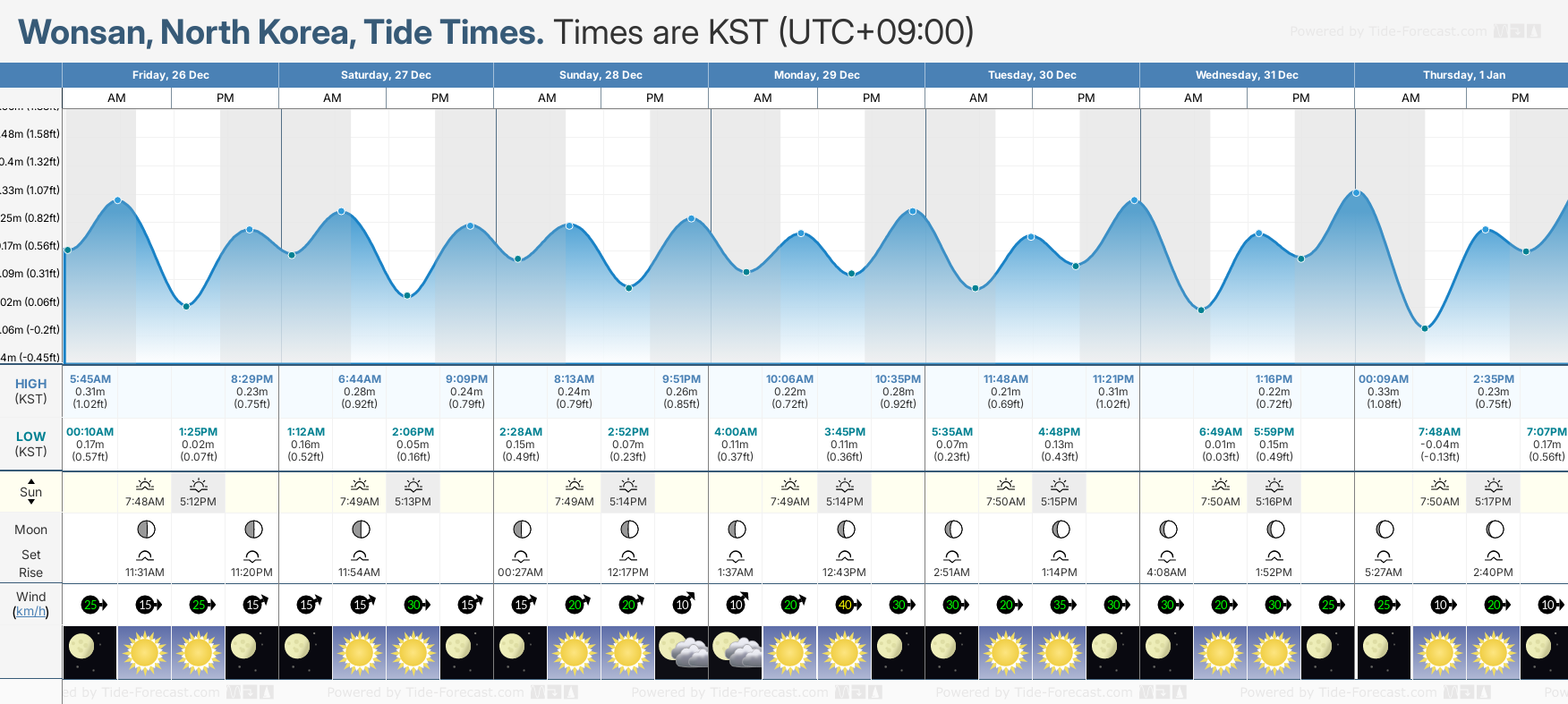 Tide Times for Wonsan (tomorrow): Friday 26 December 2025