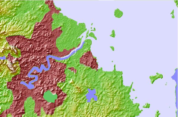 Use this relief map to navigate to tide stations, surf breaks and cities that are in the area of Wynnum.