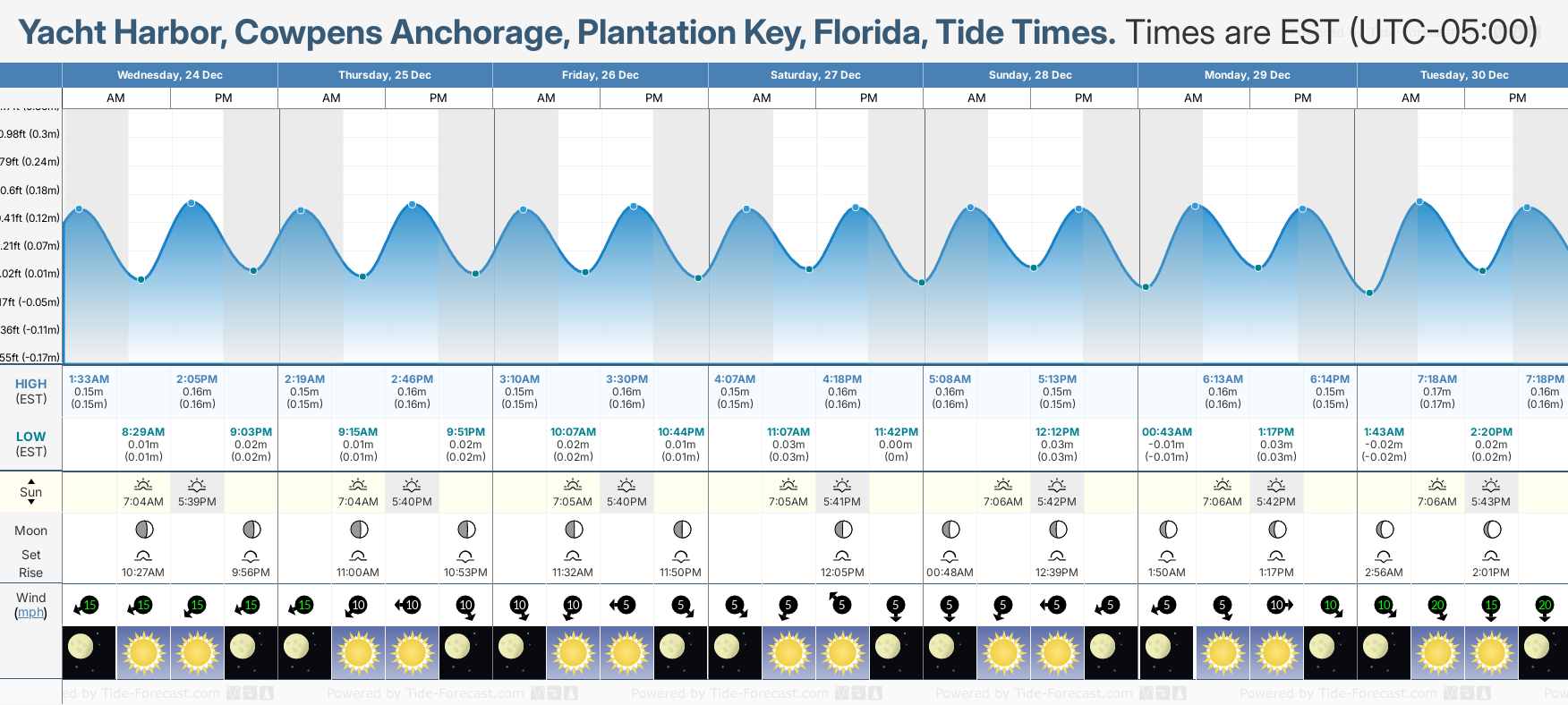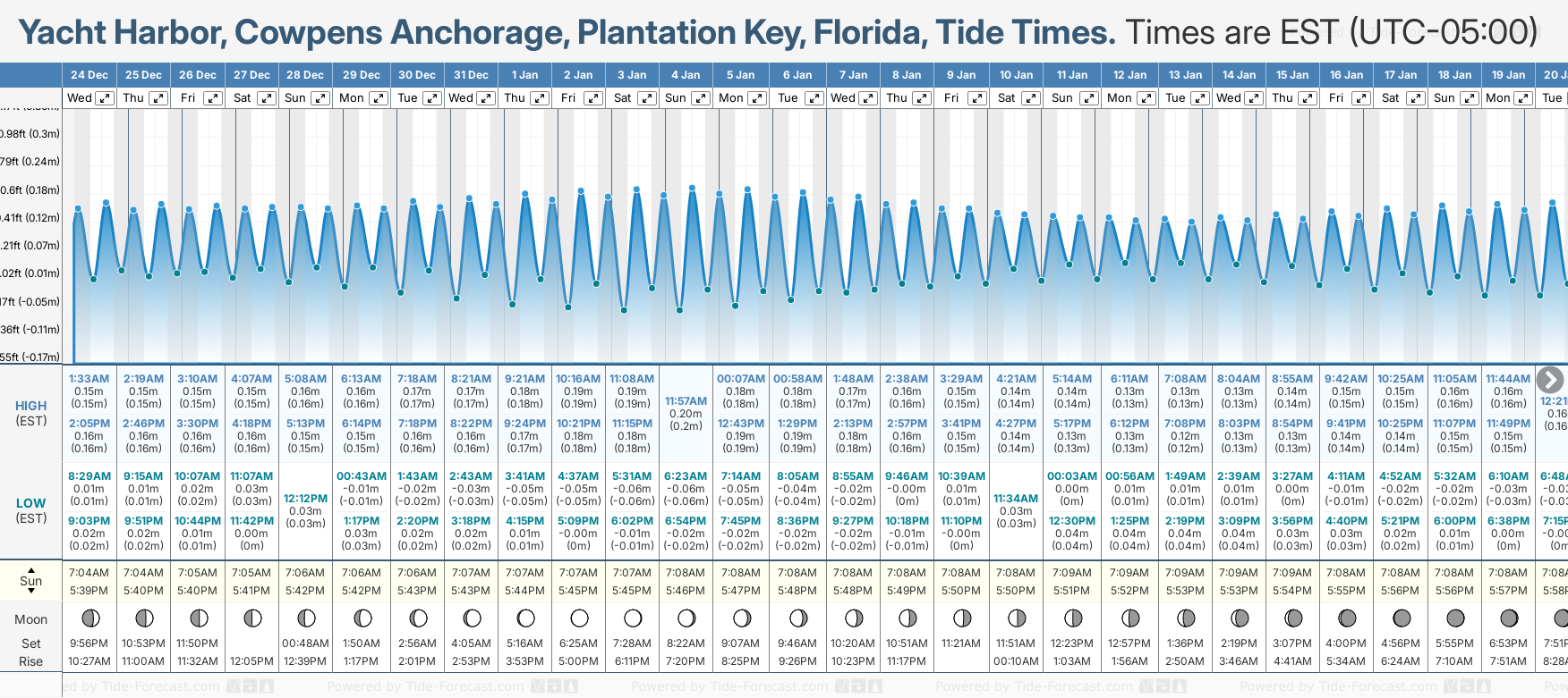 Today's tide times for Yacht Harbor, Cowpens Anchorage, Plantation Key: Wednesday 24 December 2025