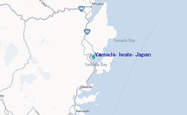 Use this relief map to navigate to tide stations, surf breaks and cities that are in the area of Yamada, Iwate, Japan.