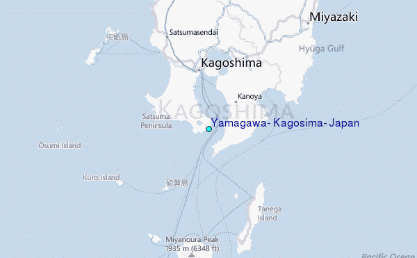 Use this relief map to navigate to tide stations, surf breaks and cities that are in the area of Yamagawa, Kagosima, Japan.