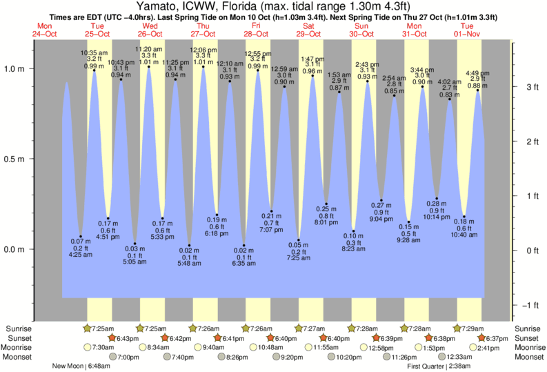 Tide chart for Yamato, ICWWShowing low and high tide times for the next 30 days at Yamato, ICWW. Tide Times are EST (UTC -5.0hrs).