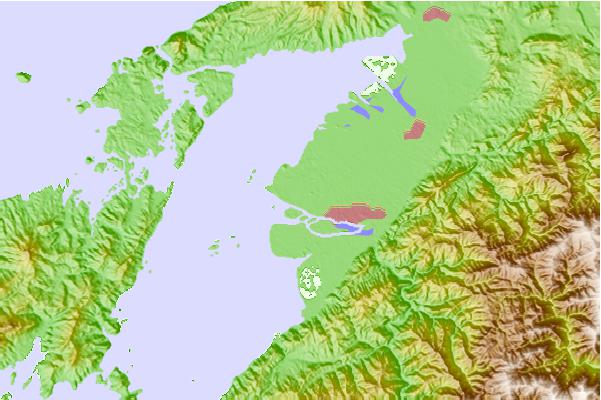 Use this relief map to navigate to tide stations, surf breaks and cities that are in the area of Yatusiro, Kumamoto, Japan.