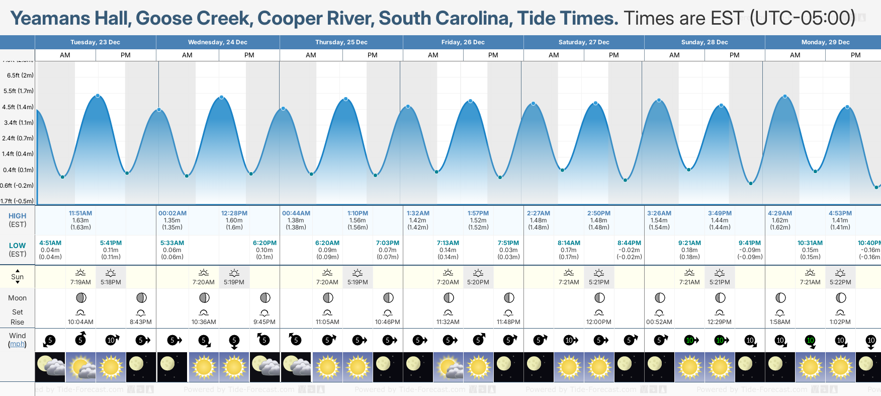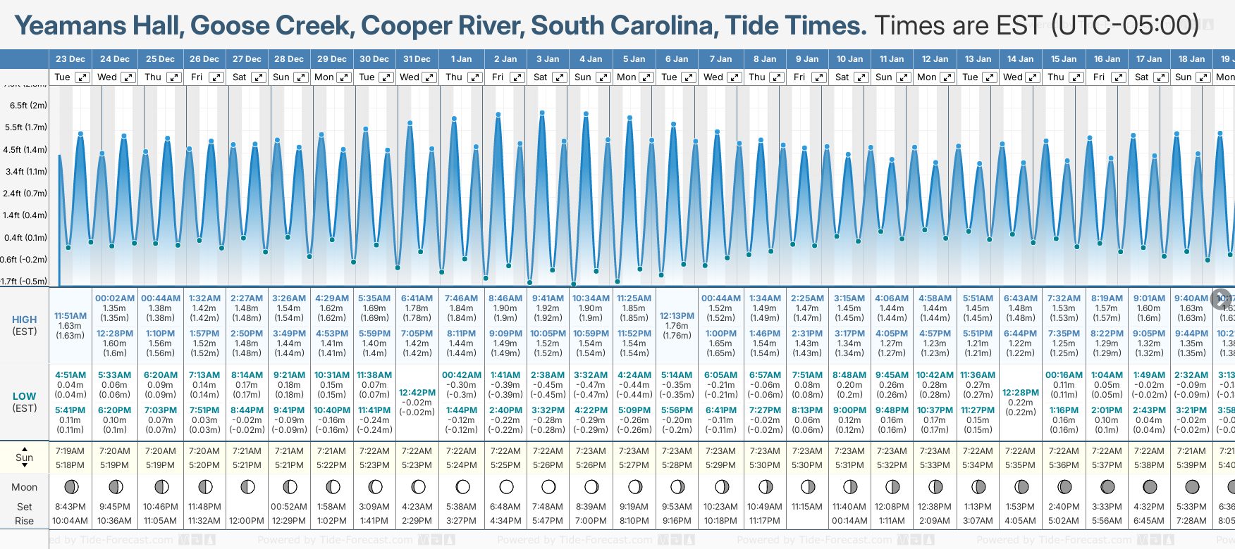NOTE: Use of this site for Yeamans Hall, Goose Creek, Cooper River, South Carolina tide times is subject to our terms.