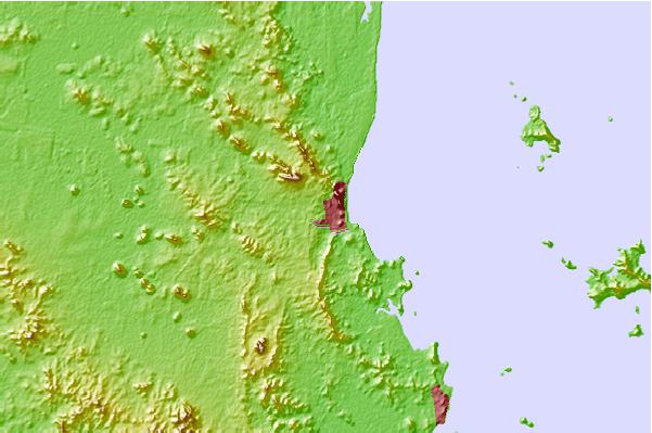Use this relief map to navigate to tide stations, surf breaks and cities that are in the area of Yeppoon.