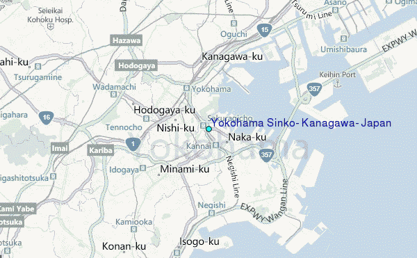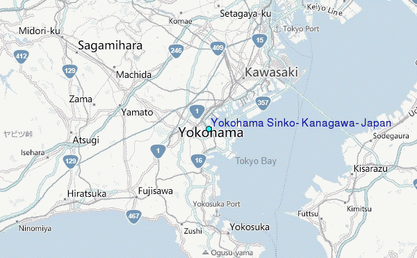 Use this relief map to navigate to tide stations, surf breaks and cities that are in the area of Yokohama Sinko, Kanagawa, Japan.