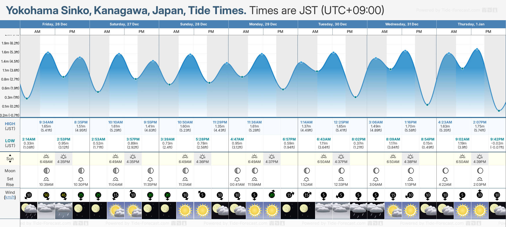 Yokohama Sinko tide times for December and January