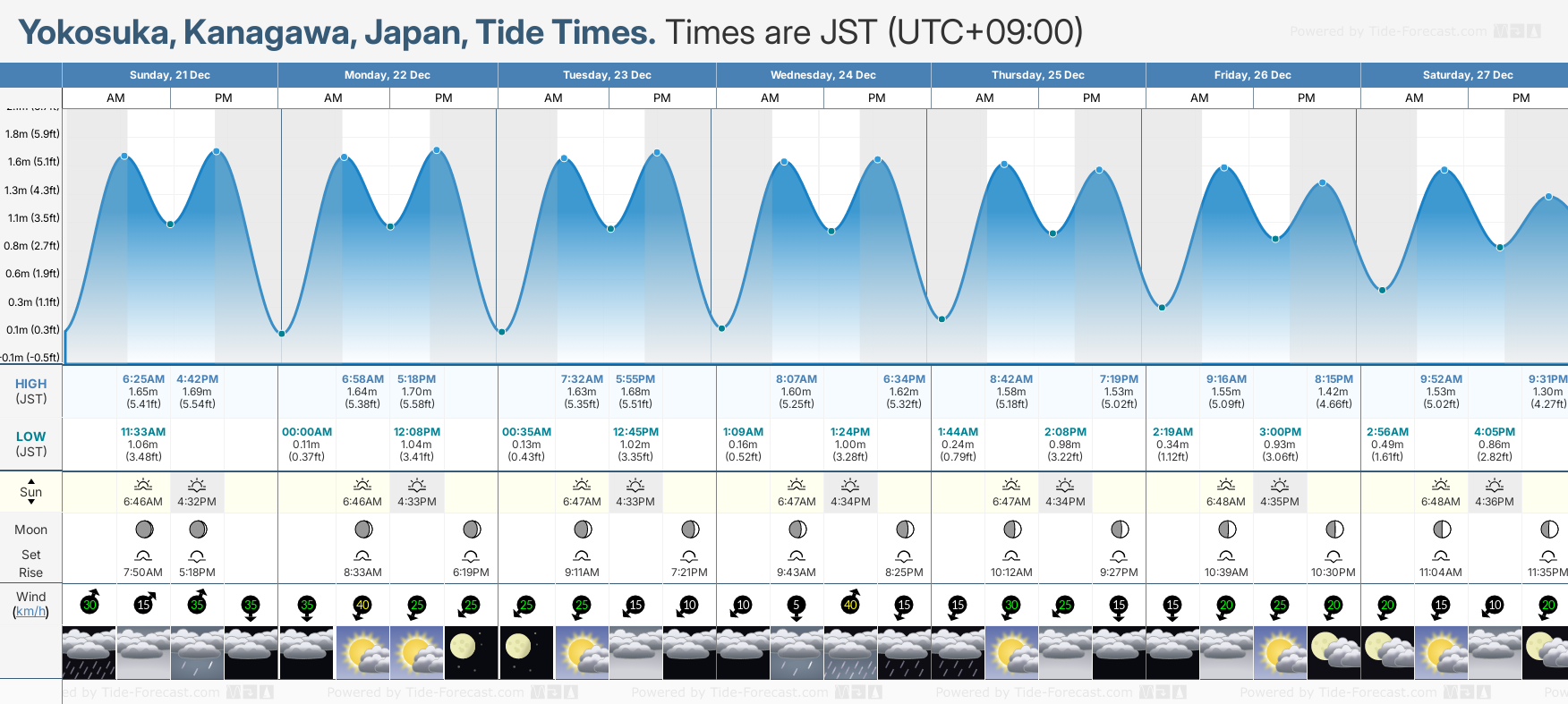 Today's tide times for Yokosuka: Sunday 21 December 2025