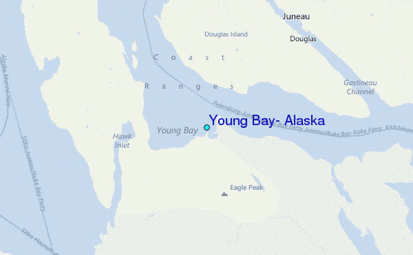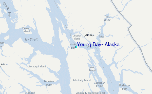 Use this relief map to navigate to tide stations, surf breaks and cities that are in the area of Young Bay, Alaska.