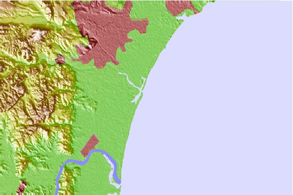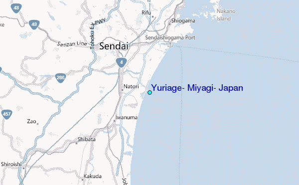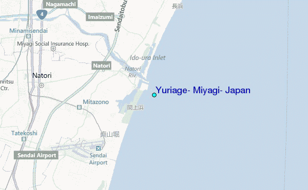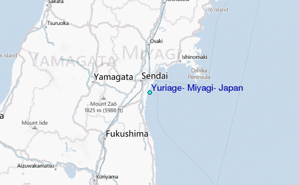 Use this relief map to navigate to tide stations, surf breaks and cities that are in the area of Yuriage, Miyagi, Japan.