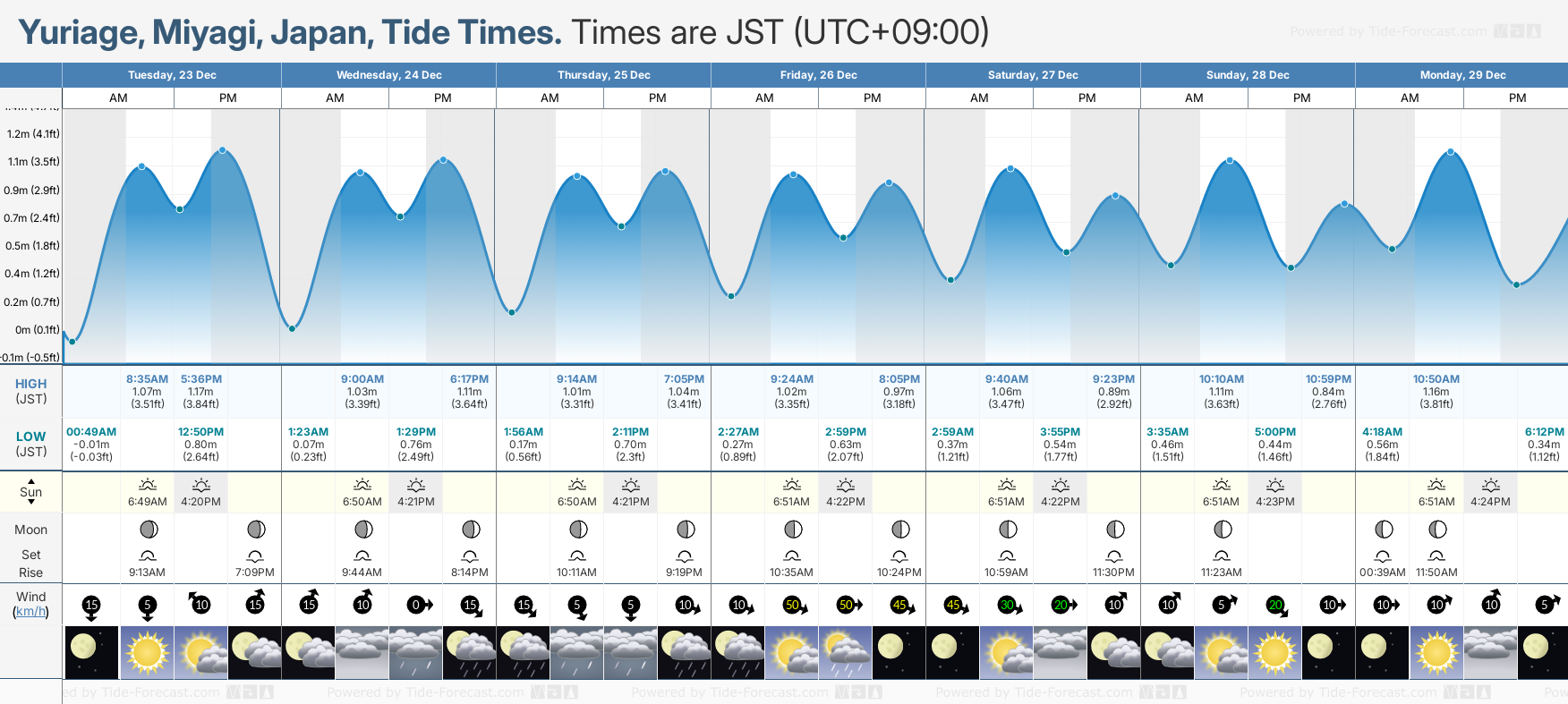Tide Times for Yuriage (tomorrow): Wednesday 24 December 2025
