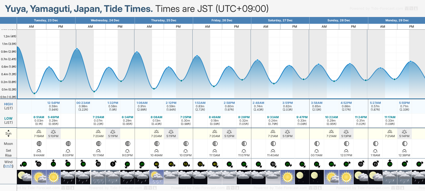 Today's tide times for Yuya: Tuesday 23 December 2025