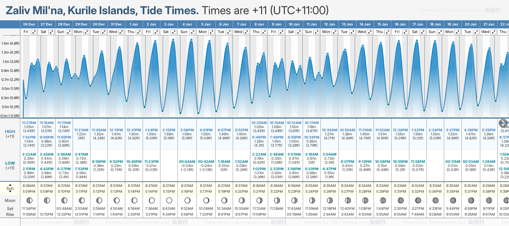 NOTE: Use of this site for Zaliv Mil'na, Kurile Islands tide times is subject to our terms.