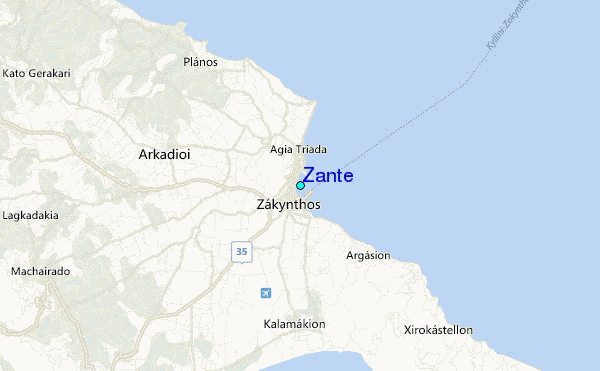 Use this relief map to navigate to tide stations, surf breaks and cities that are in the area of Zante.