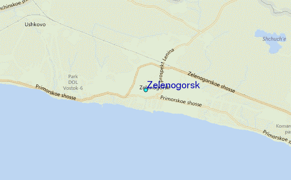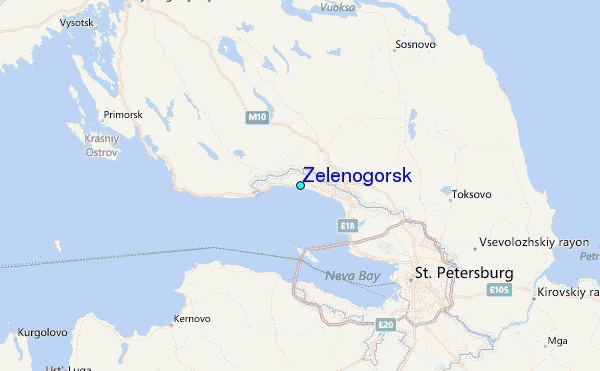 Use this relief map to navigate to tide stations, surf breaks and cities that are in the area of Zelenogorsk.
