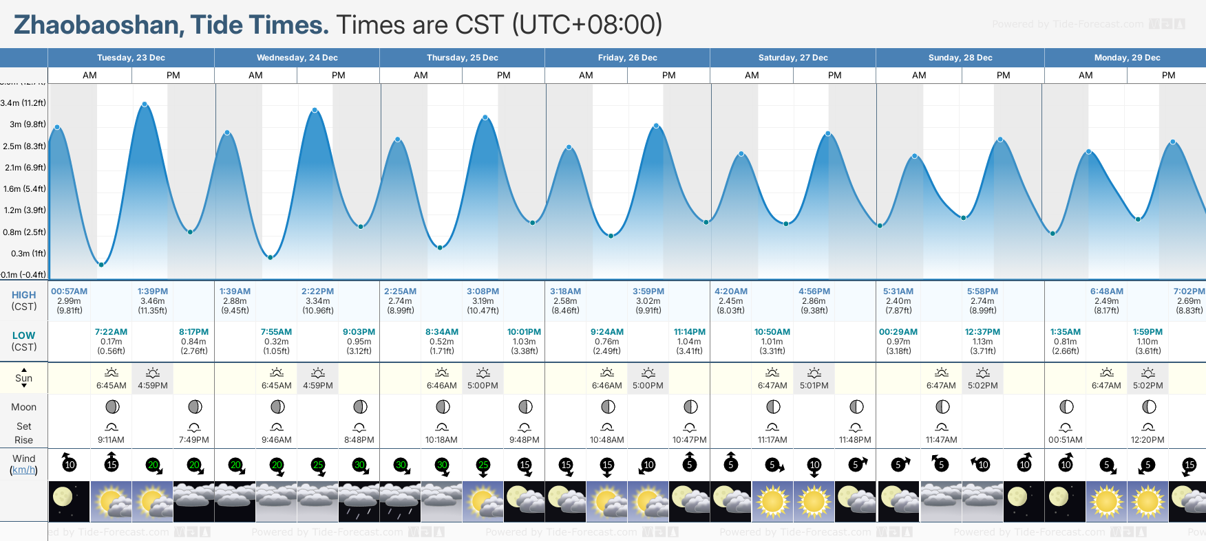 Tide Times for Zhaobaoshan (tomorrow): Wednesday 24 December 2025