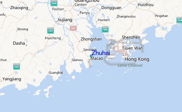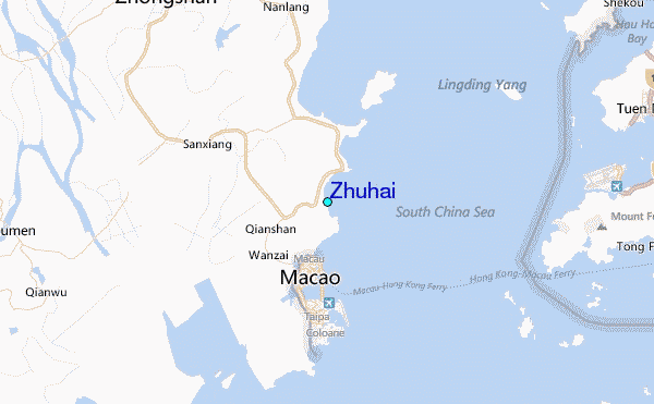 Use this relief map to navigate to tide stations, surf breaks and cities that are in the area of Zhuhai.