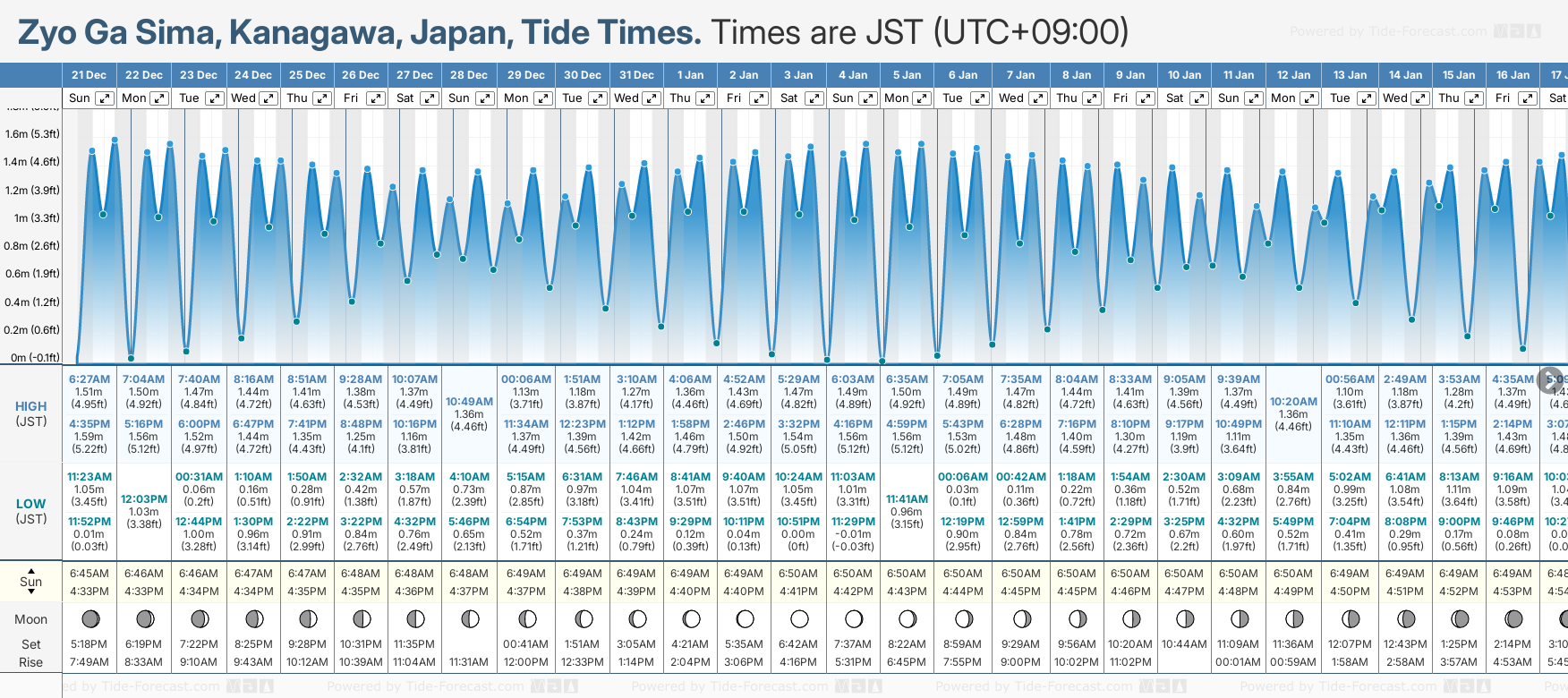 Today's tide times for Zyo Ga Sima, Kanagawa, Japan