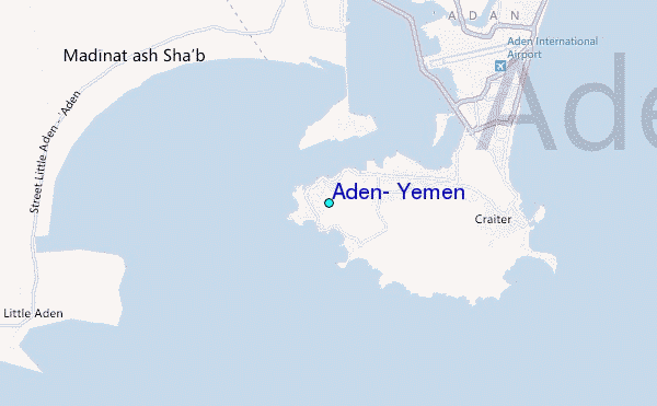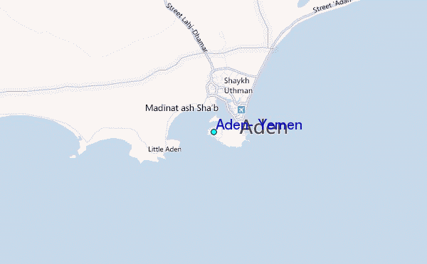 Use this relief map to navigate to tide stations, surf breaks and cities that are in the area of Aden, Yemen.