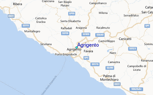 Use this relief map to navigate to tide stations, surf breaks and cities that are in the area of Agrigento.