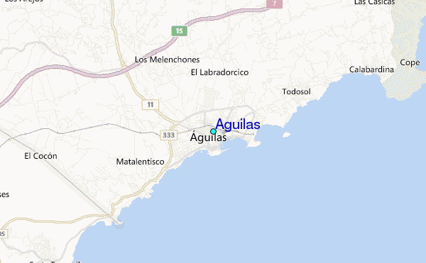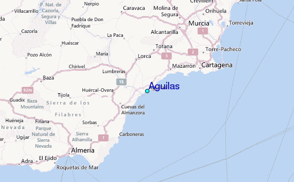 Use this relief map to navigate to tide stations, surf breaks and cities that are in the area of Aguilas.