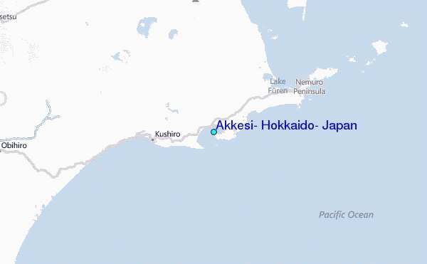 Use this relief map to navigate to tide stations, surf breaks and cities that are in the area of Akkesi, Hokkaido, Japan.