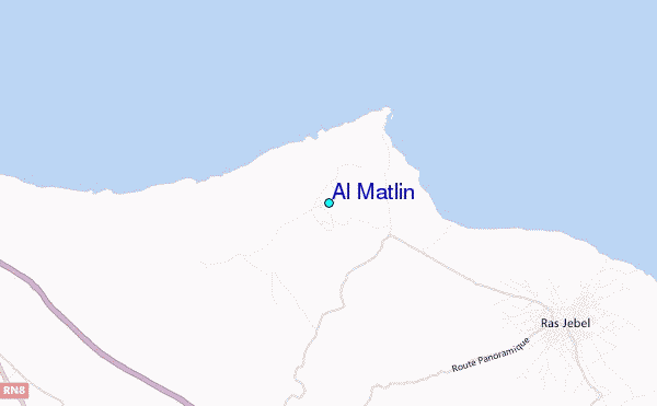 Use this relief map to navigate to tide stations, surf breaks and cities that are in the area of Al Matlin.