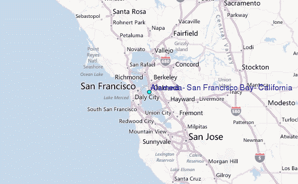 Use this relief map to navigate to tide stations, surf breaks and cities that are in the area of Alameda, San Francisco Bay, California.
