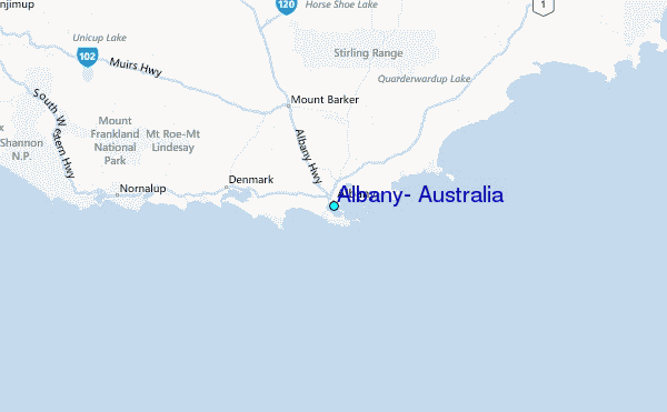 Use this relief map to navigate to tide stations, surf breaks and cities that are in the area of Albany, Australia.