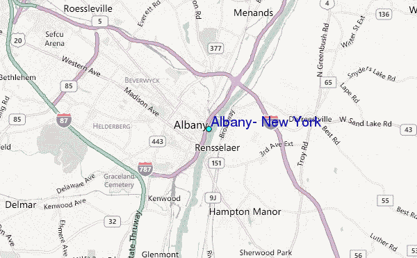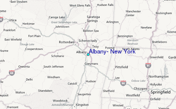 Use this relief map to navigate to tide stations, surf breaks and cities that are in the area of Albany, New York.