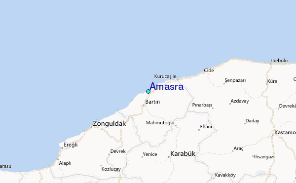Use this relief map to navigate to tide stations, surf breaks and cities that are in the area of Amasra.