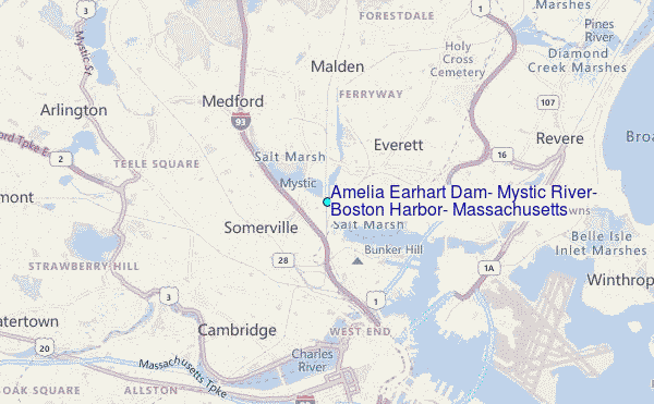 Other Nearby Locations' tide tables and tide charts to Amelia Earhart Dam, Mystic River, Boston Harbor, Massachusetts: