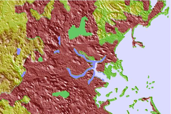 Use this relief map to navigate to tide stations, surf breaks and cities that are in the area of Amelia Earhart Dam, Mystic River, Boston Harbor, Massachusetts.