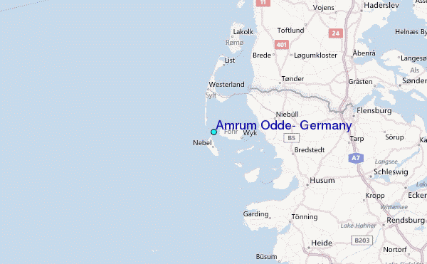 Use this relief map to navigate to tide stations, surf breaks and cities that are in the area of Amrum Odde, Germany.