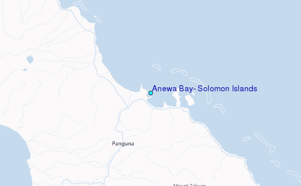 Use this relief map to navigate to tide stations, surf breaks and cities that are in the area of Anewa Bay, Solomon Islands.