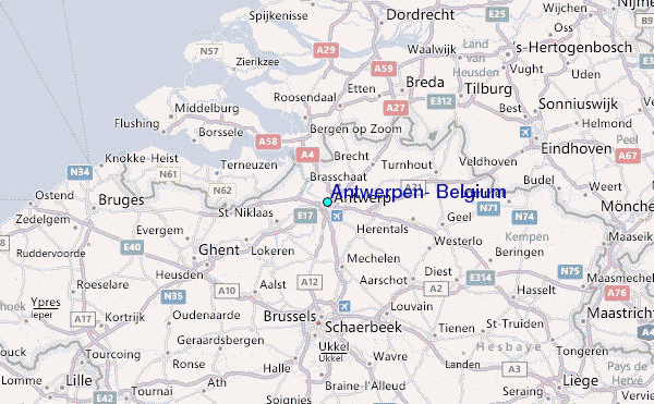 Use this relief map to navigate to tide stations, surf breaks and cities that are in the area of Antwerpen, Belgium.